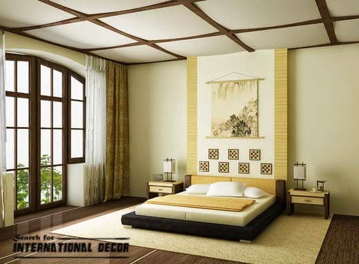 | Japanese bedroom interior designs, plasterboard false ceiling |
